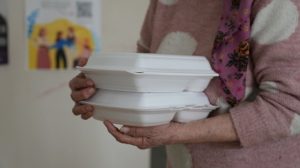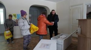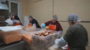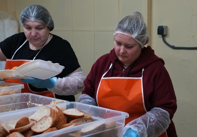 Безкоштовні обіди не тільки розвозять по соціальних установах. Їх також щодня видають в обідній час у “Плурітоні”. Волонтери телефонують людям вразливих категорій за списками від управління соцзахисту, які ще не приходили по допомогу.