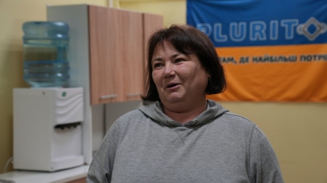 Любов Дяченко з трьома дітьми виїхала з рідного Краснопілля у 2023 році. Розповідає: з “Плурітоном” співпрацювала ще вдома, була волонтеркою, зараз у Сумах відповідає за роботу благодійної кухні. Свою допомогу пропонують мешканці гуртожитку для переселенців “Плурітону”.