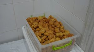 Цю партію обідів відправляють у гуртожиток для внутрішньо переміщених осіб. Звідти є замовлення на 99 порцій. Мешканці отримують їжу на себе, на сусідів, на членів родини.