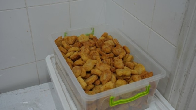 “Щодня різне. Це салат, капуста, морква, може бурячок якийсь відварений, це каші, це м’ясо, це нагетси, хліб. Тобто щодня ми щось різне готуємо”, — розповіла жінка.