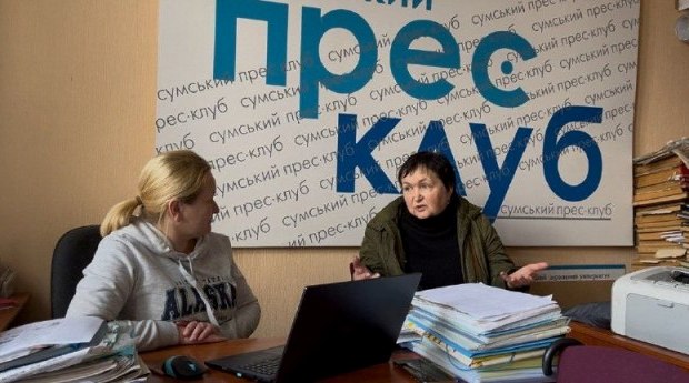 У Сумському пресклубі разом з його керівницею Аллою Федориною. Фото надала Ольга Кисленко