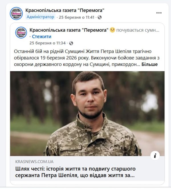 Скриншот зі сторінки газети “Перемога” у Facebook